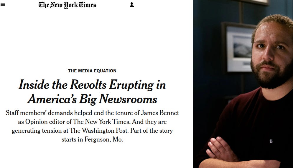 “American view-from-nowhere, ‘objectivity’-obsessed, both-sides journalism is a failed experiment,” he tweeted of [a controversy at the New York Times]. “We need to rebuild our industry as one that operates from a place of moral clarity.”